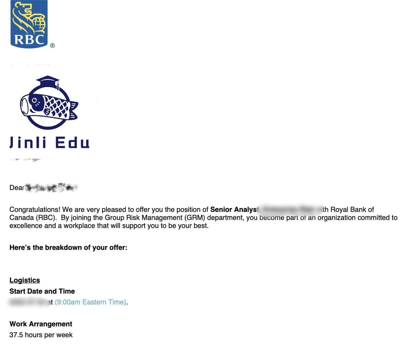 最终Offer:RBC Data Specialist($90,000)